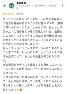 自分ではわからない姿勢のチェックや筋肉への負荷のかけ方等、しっかり細かく教えていただけるので嬉しいです‼︎またレッスン中にbabyが泣いても抱っこしてくれたりと、ママがレッスンに集中出来るように環境を整えてくれるのもありがたいです⭐︎