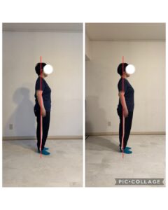 Afterでは、スッと体が前に倒れて、指先がぐっと床に近づいています^ ^